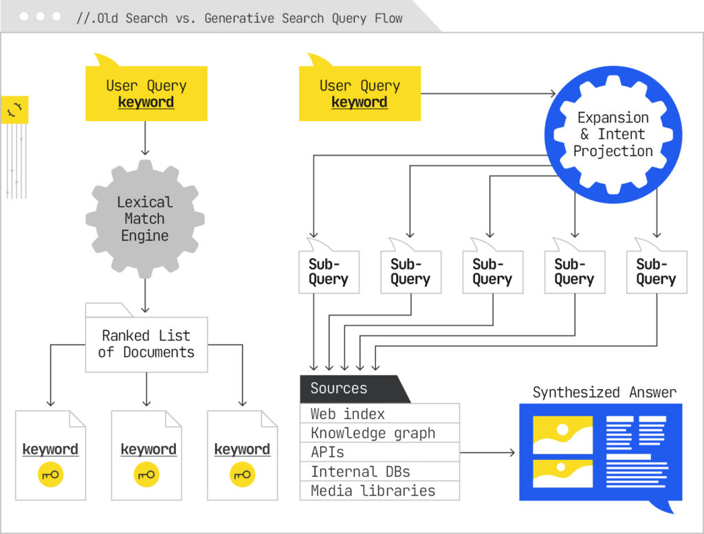 AI 검색 엔진은 사용자의 질문을 받으면 그것을 여러 개의 하위 질문으로 자동 확장합니다. 사람이 검색을 정제하고 변형해가며 원하는 답에 다가가는 방식을 AI도 구조적으로 똑같이 합니다.