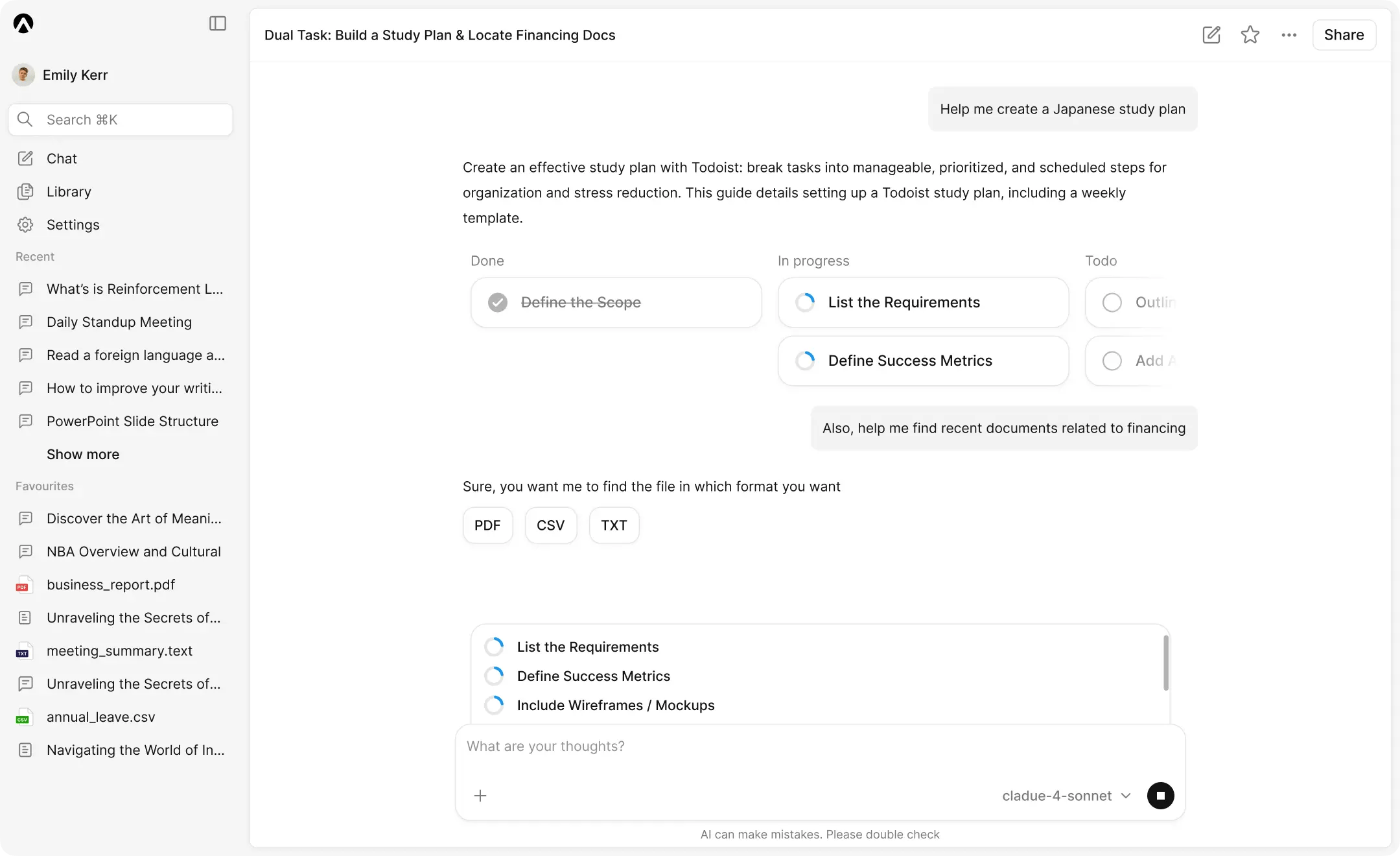 첫째, 진짜 멀티 모델 협업입니다. 하나의 채팅창에서 여러 최첨단 모델들이 함께 작업합니다. 코드 생성이 필요하면 Claude가, 이미지가 필요하면 DALL-E가, 웹 리서치가 필요하면 Perplexity가 나섭니다. 각 작업에 최적화된 모델을 자동으로 선택하거나 직접 지정할 수 있습니다.