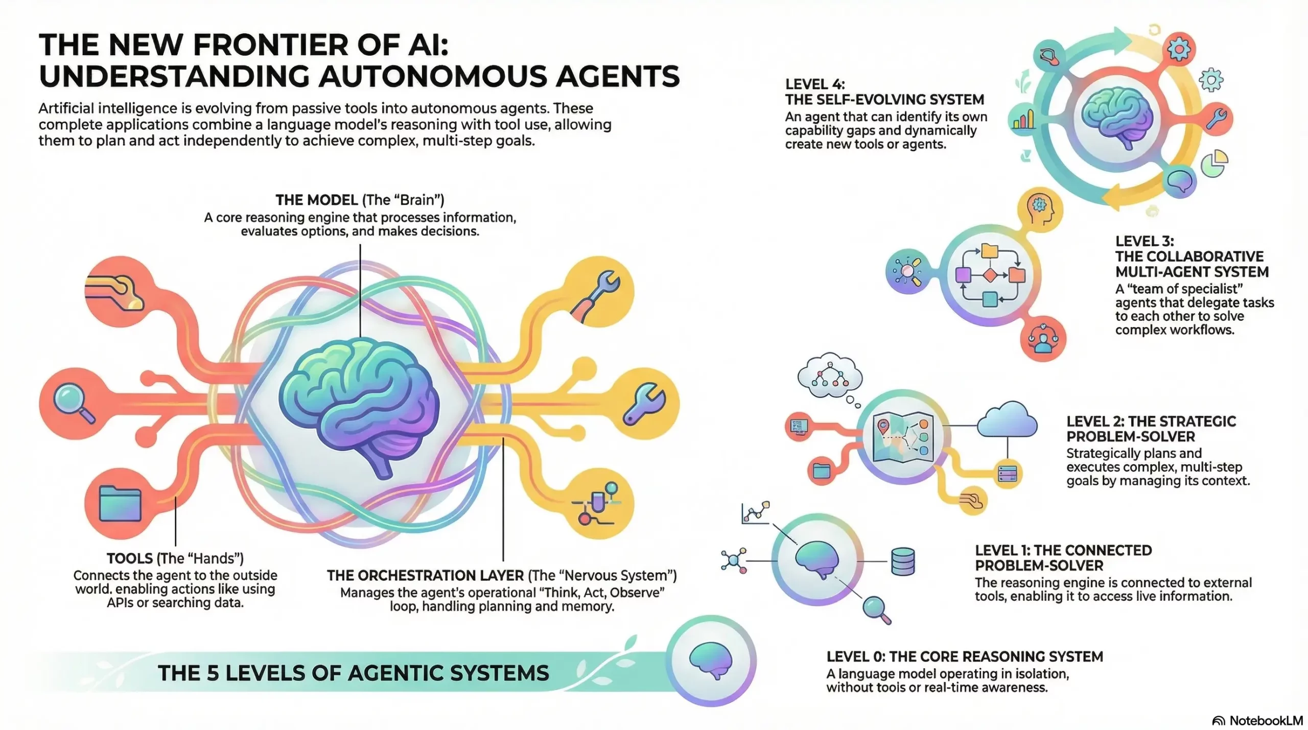 필자가 AI 에이전트 관련 연구 논문을 업로드했을 때의 결과가 인상적입니다. 논문 속 복잡한 개념들이 깔끔한 다이어그램으로 변환됐어요. ‘자율 AI 에이전트의 5단계 레벨’을 설명하는 시각 자료는 전문 디자이너가 만든 것처럼 보입니다. 더 놀라운 건 ‘뇌(brain)’, ‘손(hands)’, ‘신경계(nervous system)’ 같은 비유까지 적절하게 시각화했다는 점이죠.