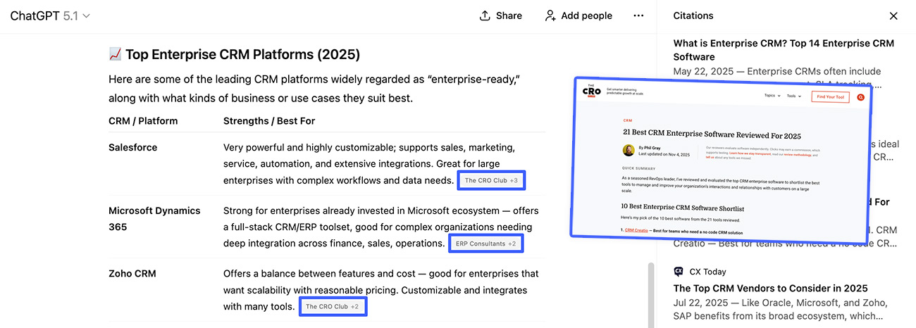 AI 검색이 인용하는 콘텐츠에는 패턴이 있을까요? ChatGPT에게 “최고의 CRM 소프트웨어”를 물어보면, 답변 출처로 특정 형식의 글이 압도적으로 많이 등장합니다. 심지어 자사 제품을 1위에 올린 자화자찬형 리스트도 효과적이라는 사실이 밝혀졌습니다.