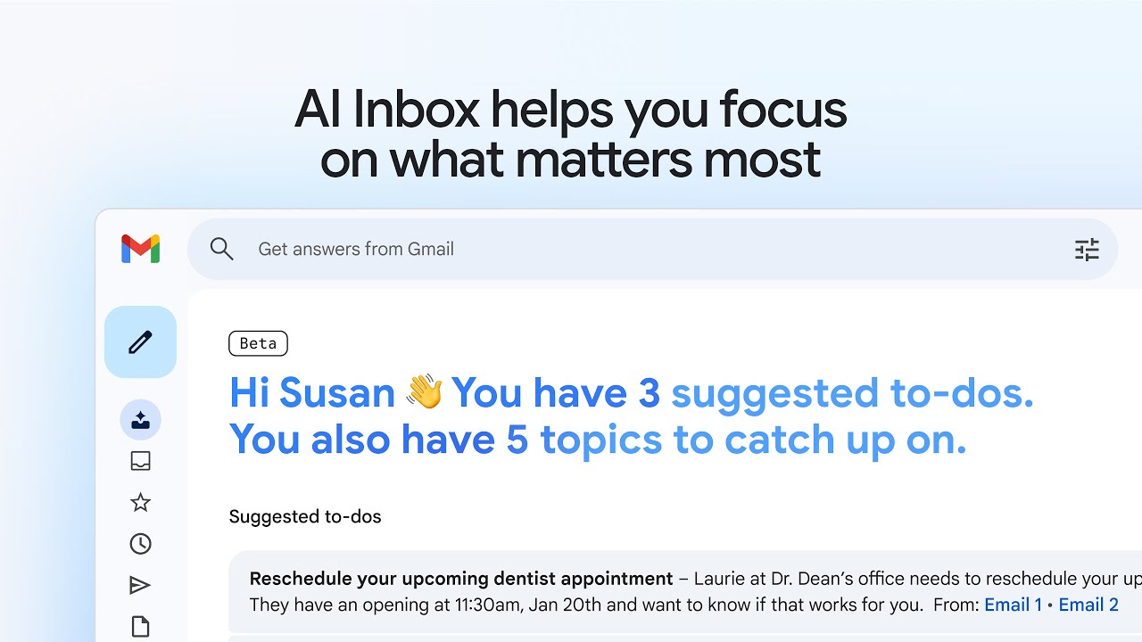 AI Inbox는 현재 미국의 ‘신뢰할 수 있는 테스터들’에게만 제공되고 있습니다. 몇 달 내로 더 많은 사람들에게 공개될 예정이지만, Workspace 계정에선 아직 쓸 수 없고 개인 Gmail 계정만 가능합니다. 또 할 일을 완료했다고 표시하는 기능도 아직 없어서, 예를 들어 Gmail이 “누구한테 전화하기”를 추천했는데 실제로 이메일 대신 전화를 걸었다면 Gmail은 그걸 모릅니다. 이건 개발 중이라고 하네요.